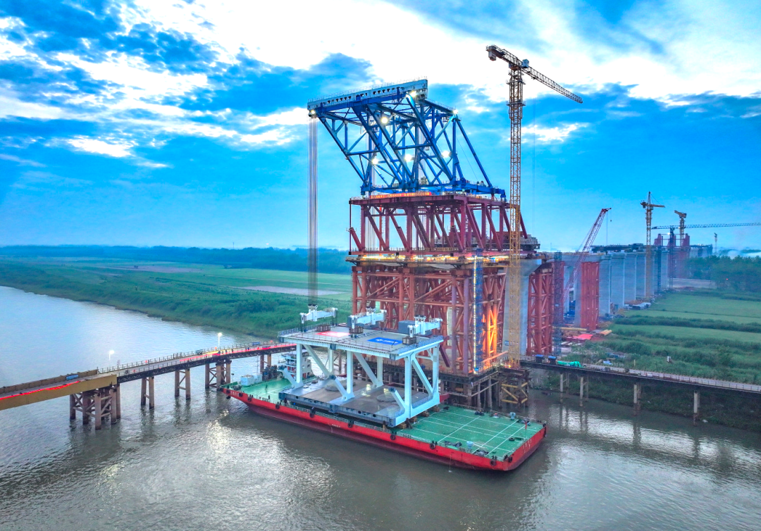 5月14日,隨著鋼桁梁的提升、落位、安裝,由集團建設(shè)的池州長江公鐵大橋成功吊裝全橋首節(jié)鋼桁梁,標(biāo)志著該項目正式步入主橋上部結(jié)構(gòu)鋼梁施工階段。