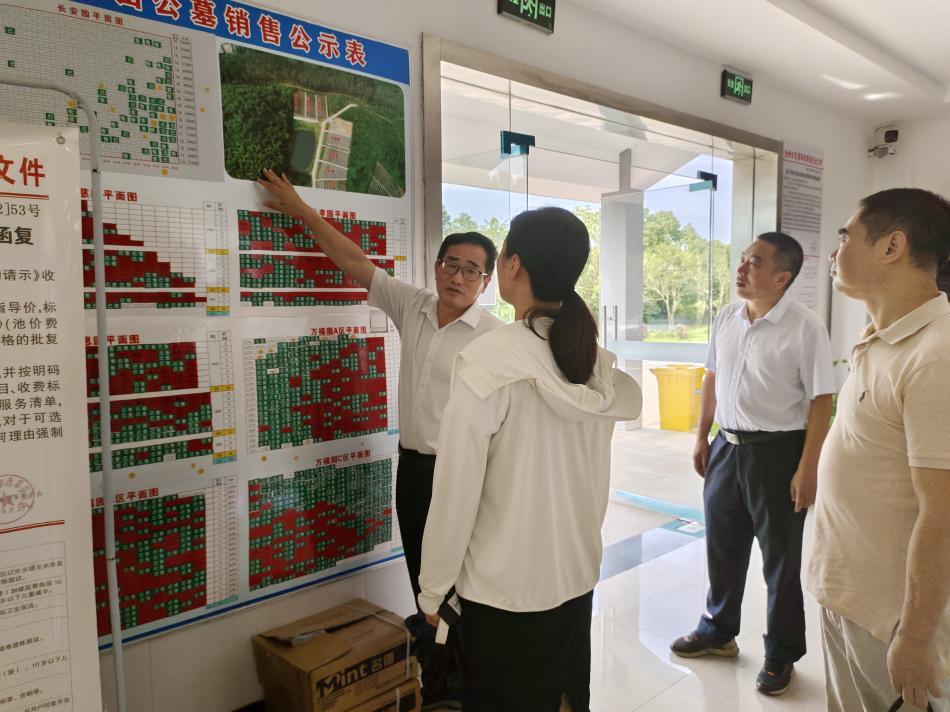 朱蕓蕓一行先后參觀了生態(tài)人文公司服務(wù)接待大廳、公墓銷售公示欄,聽取了生態(tài)人文公司目前安全生產(chǎn)、服務(wù)經(jīng)營等方面工作匯報(bào),并實(shí)地察看了池州生態(tài)人文紀(jì)念園項(xiàng)目施工現(xiàn)場(chǎng),深入了解了園區(qū)規(guī)劃、公益性墓區(qū)、骨灰堂等工程建設(shè)相關(guān)情況。