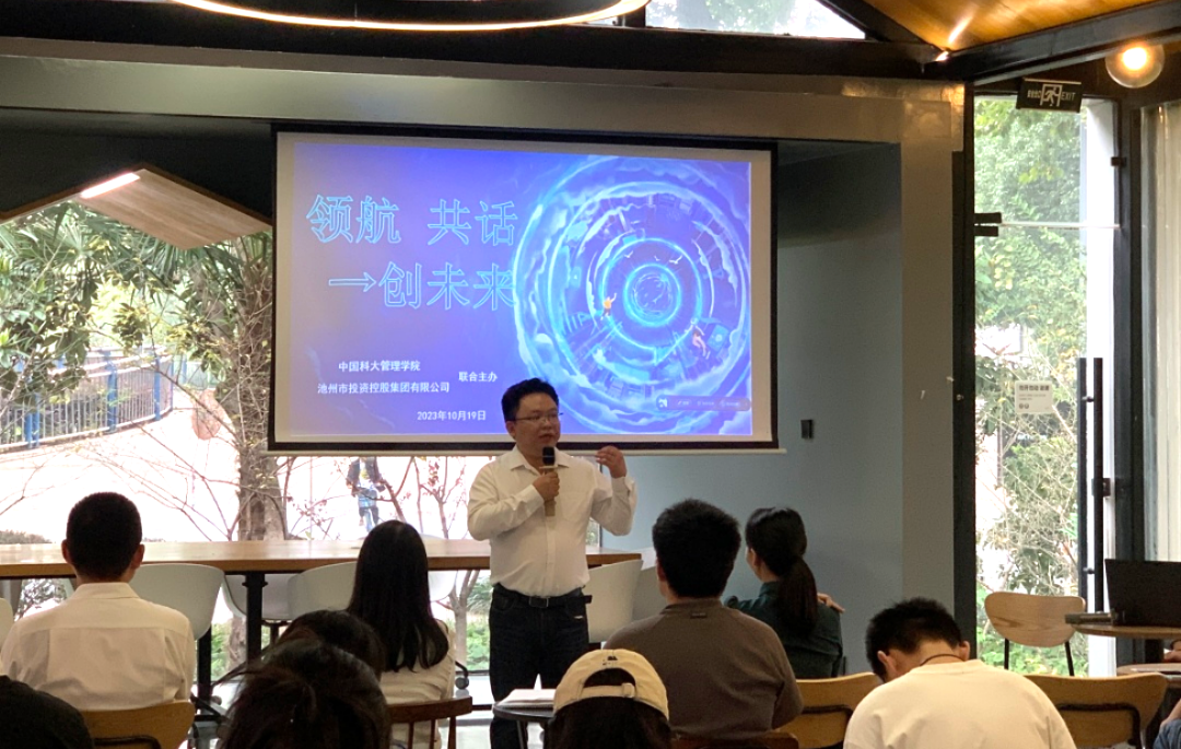 中國(guó)科大管理學(xué)院黨委副書記曾皓,池州市投資控股集團(tuán)黨委副書記、董事、工會(huì)主席嚴(yán)艷,中國(guó)科大博士學(xué)長(zhǎng)、池州新興產(chǎn)投集團(tuán)黨委書記、董事長(zhǎng)、總經(jīng)理周嶠,中國(guó)科大管理學(xué)院50多名學(xué)生參加了會(huì)議。