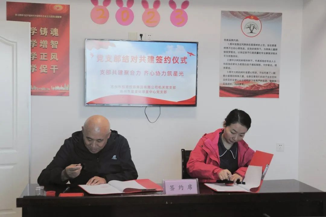市民政局四級調(diào)研員張中才,市投控集團(tuán)黨委副書記、機關(guān)支部書記嚴(yán)艷,市投控集團(tuán)機關(guān)黨支部支委班子參加簽約儀式。簽約儀式前,池州星星樹康復(fù)中心負(fù)責(zé)人吳靜和市投控集團(tuán)黨委副書記嚴(yán)艷分別就雙方單位情況作了介紹。