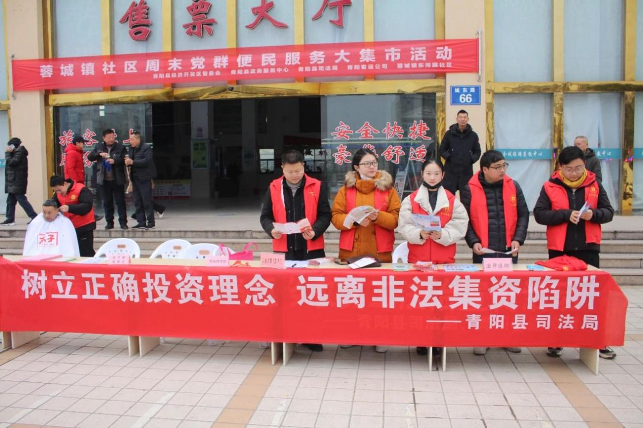 臨近年底,返鄉(xiāng)人員逐漸增多,為幫助群眾及返鄉(xiāng)人員擦亮眼睛,精準(zhǔn)識別各類投資陷阱,1月26日池州交運集團青陽客運公司、青陽縣司法局聯(lián)合在站前廣場上開展預(yù)防非法集資法治宣傳活動。
