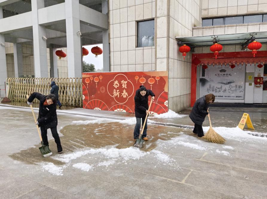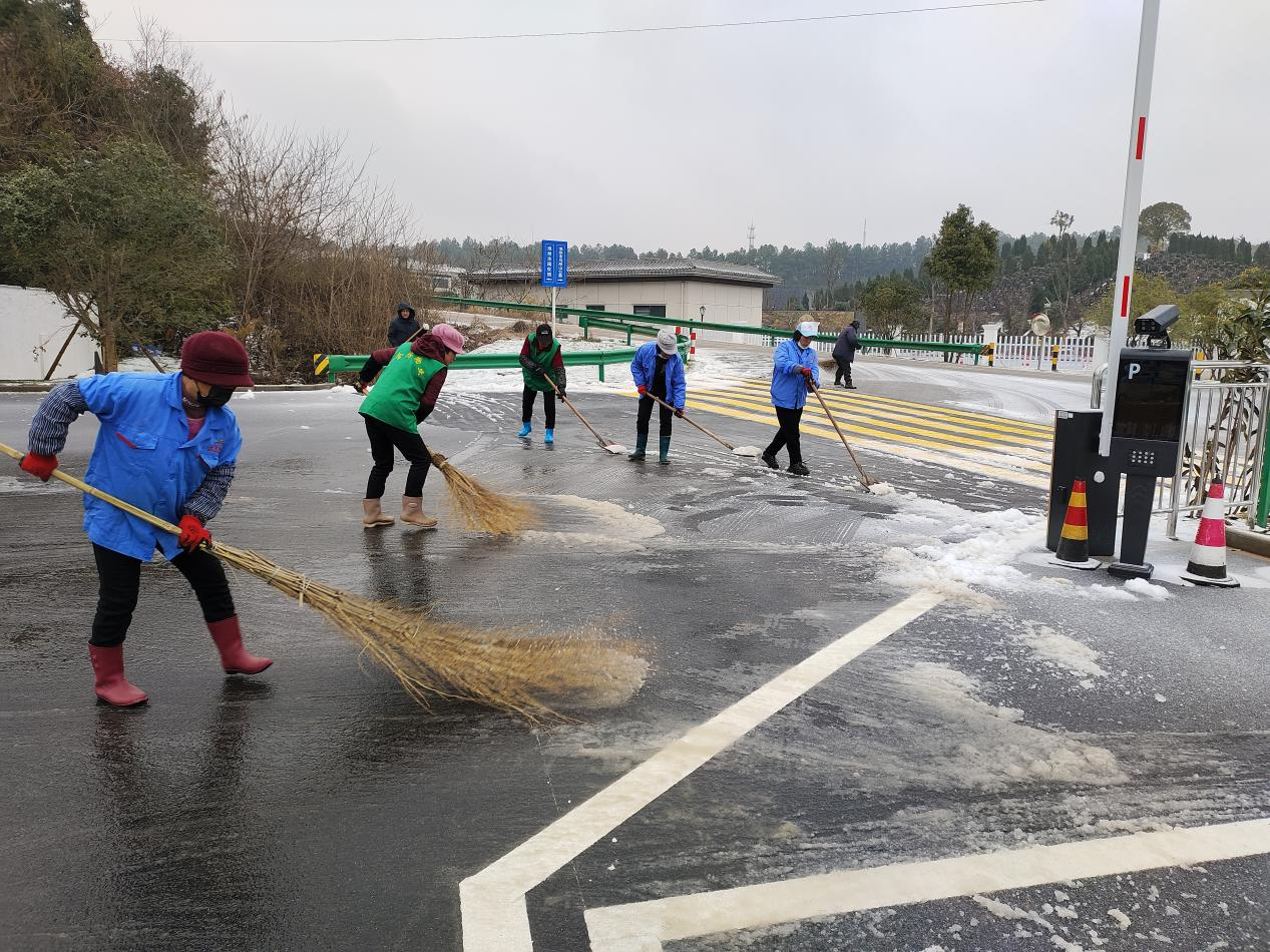 公司組織全體員工迅速投入掃雪除冰行動,安排專人在001縣道小沖口下坡段多次拋灑融雪劑,重點對坡道路面加強清雪除冰工作。全體干部職工,按照下雪應急預案提前劃分好區(qū)域,對各區(qū)域道路的積雪進行清掃。經過奮力清雪除冰,通往園區(qū)和館內道路積雪積冰情況得到有效緩解。