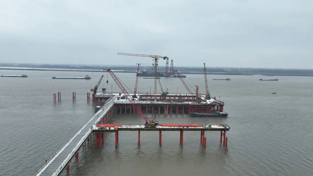 春節(jié)過后,池州港烏沙港區(qū)公用碼頭項(xiàng)目施工人員以時(shí)不我待的精神,鉚足干勁抓緊度、忙生產(chǎn),確保施工現(xiàn)場有序推進(jìn)。截至目前,該項(xiàng)目水域部分碼頭平臺面層、兩座汽車引橋已全部澆筑完成,項(xiàng)目整體進(jìn)度已完成約82%,碼頭工程主體結(jié)構(gòu)與房建工程主體結(jié)構(gòu)已全部施工完成,目前正在進(jìn)行碼頭前沿鋼結(jié)構(gòu)安裝、房建工程裝飾裝修、鋼引橋吊裝、水電安裝等施工作業(yè)。同時(shí)碼頭陸域部分已完成招標(biāo)工作,目前正在進(jìn)行開工籌備工作。