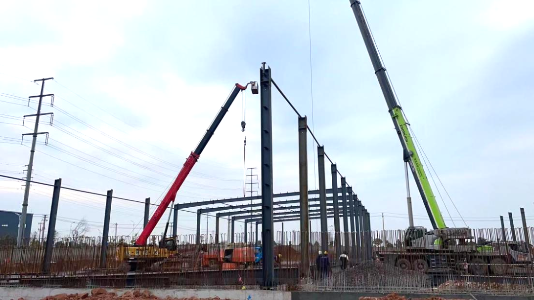 公用型保稅倉庫項(xiàng)目于2023年12月初正式開工建設(shè),項(xiàng)目建成后主要提供各種有色金屬及大宗散貨礦產(chǎn)品的倉儲,報(bào)關(guān),報(bào)檢,報(bào)稅及物流配送等服務(wù)。復(fù)工以來,全體工作人員精神飽滿,拿出了開工即決戰(zhàn)、起步即沖刺的精神狀態(tài)投入到項(xiàng)目施工中。目前保稅倉庫鋼結(jié)構(gòu)鋼柱鋼梁已搭設(shè)完成,其附屬設(shè)施中制樣間、地磅棚、沉淀池基礎(chǔ)筏板等基礎(chǔ)設(shè)施已基本完成。商發(fā)公司將掛圖作戰(zhàn)、打表推進(jìn)公用型保稅倉庫項(xiàng)目建設(shè),確保項(xiàng)目早建成、早投運(yùn)、早見效。