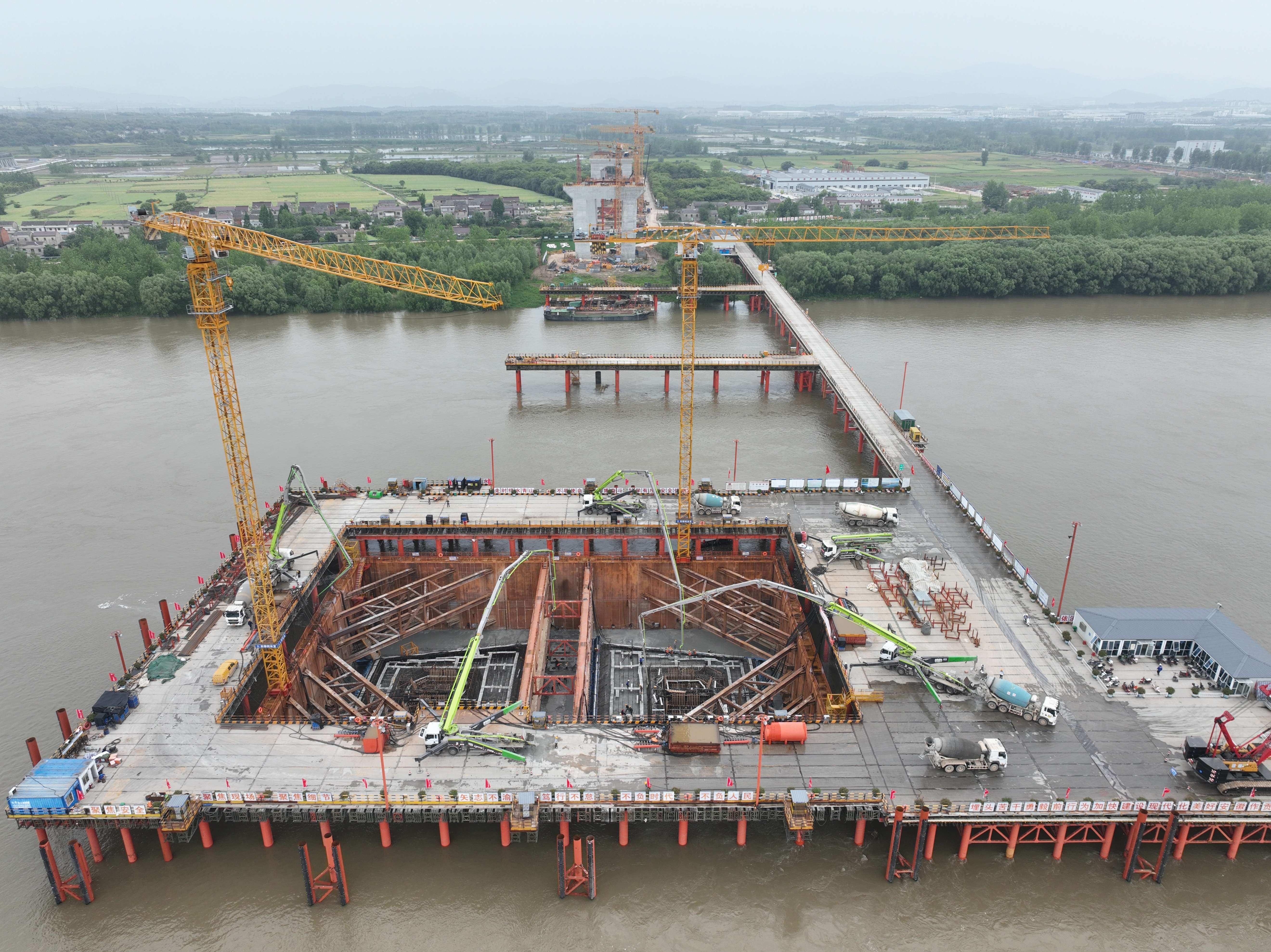 截至目前,池州長江公鐵大橋主橋4號墩承臺第一層施工完成,5號墩鐵路墩身已施工完成,6號墩目前在進(jìn)行鐵路墩蓋梁施工。引橋完成10個承臺施工,S4號墩和S5號墩鐵路墩身已施工完成,8個鐵路墩身正在進(jìn)行施工。